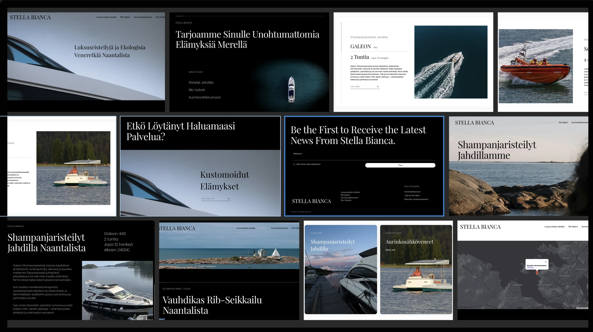 Ylellisiä merellisiä elämyksiä tarjoava Stella Bianca tarvitsi verkkosivuston, joka vastaa brändin rauhallista ja korkealaatuista tunnelmaa.
